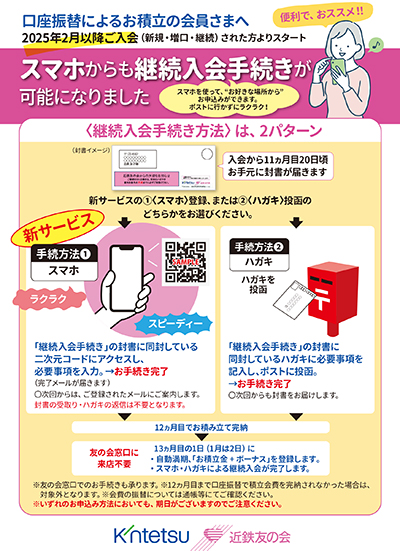 2025年9月満期登録分から、友の会カウンターへのご来店不要の「自動満期手続き(オートチャージ)」サービスを開始します。